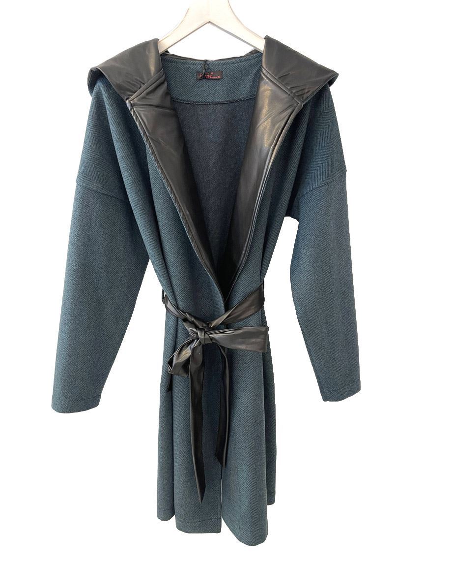 Παλτοζακέτα ζακάρ με δερματίνη PLUS SIZE ( 100% POL)